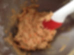 Batir en otro bol el azúcar rubia y granulada con la mantequilla, incorporar el huevo y vainilla. Luego mezclar con los ingredientes secos hasta obtener una mezcla homogenea. Incorporar zanahoria con movimientos envolventes.