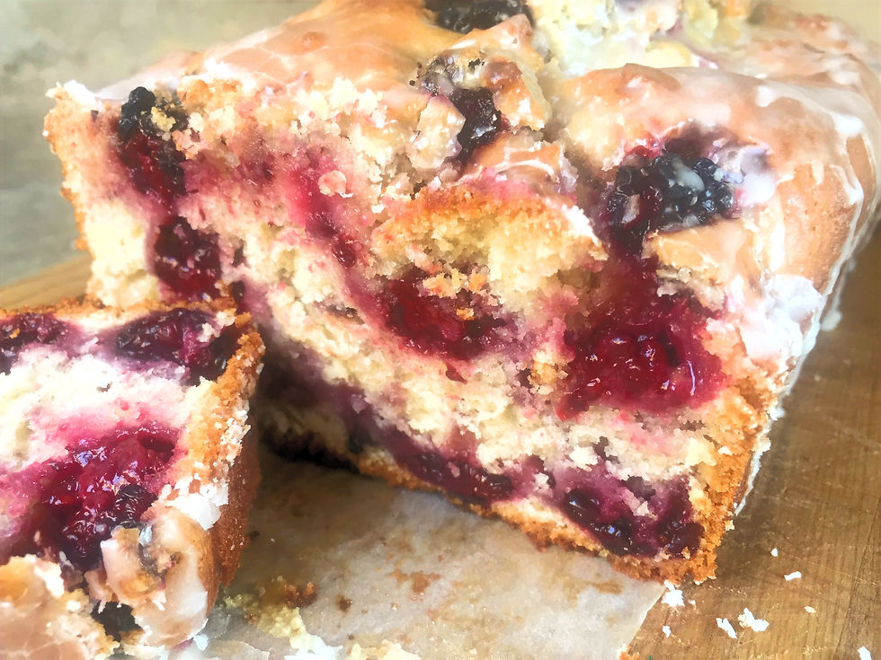 Este pan esta repleto de moras, es verdaderamente delicioso, queda suave y húmedo con un sabor intenso a mora y sin ser tan dulce. El glaseado le da un toque magistral, tienen que hacerlo, le da un sabor especial y humedece la costra del pan...es demasiado bueno, lo lleve a la casa de mi hermana y se lo comieron en un par de segundos!